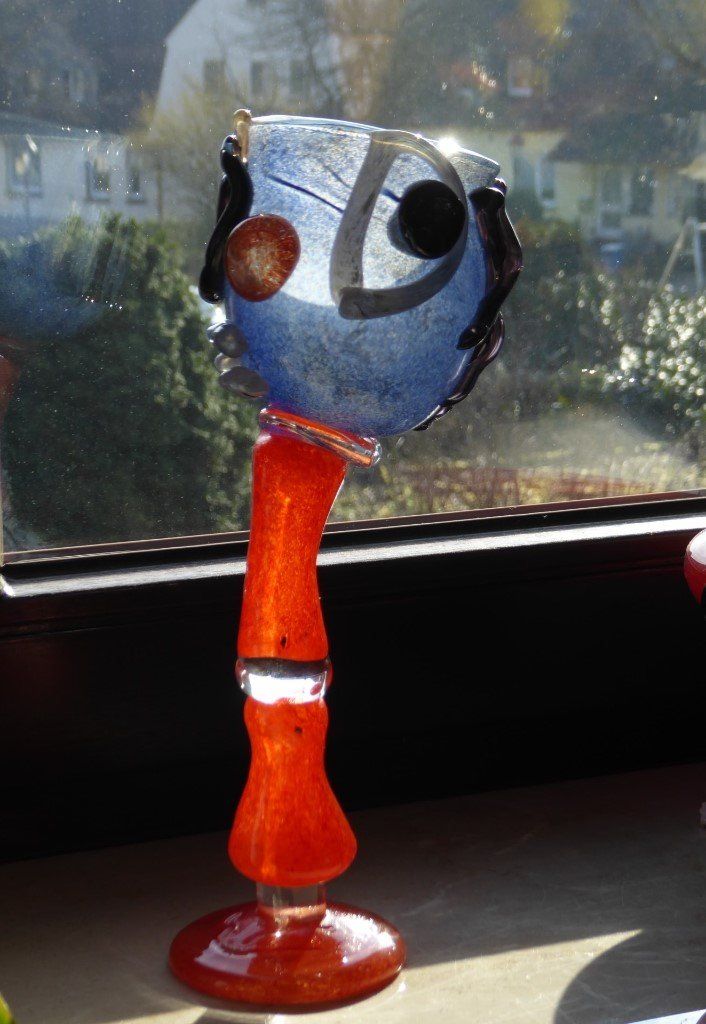 Mit diesem Glasobjekt sind wir in einer Welt voller knöchernen Existenzen und Fabelwesen angelangt, in der bunten und fröhlichen aber zugleich mahnenden und beängstigenden Welt von Josef Lange-Grumfeld.