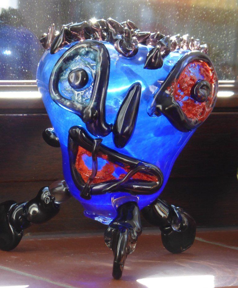 Mit diesem Glasobjekt sind wir in einer Welt voller knöchernen Existenzen und Fabelwesen angelangt, in der bunten und fröhlichen aber zugleich mahnenden und beängstigenden Welt von Josef Lange-Grumfeld.