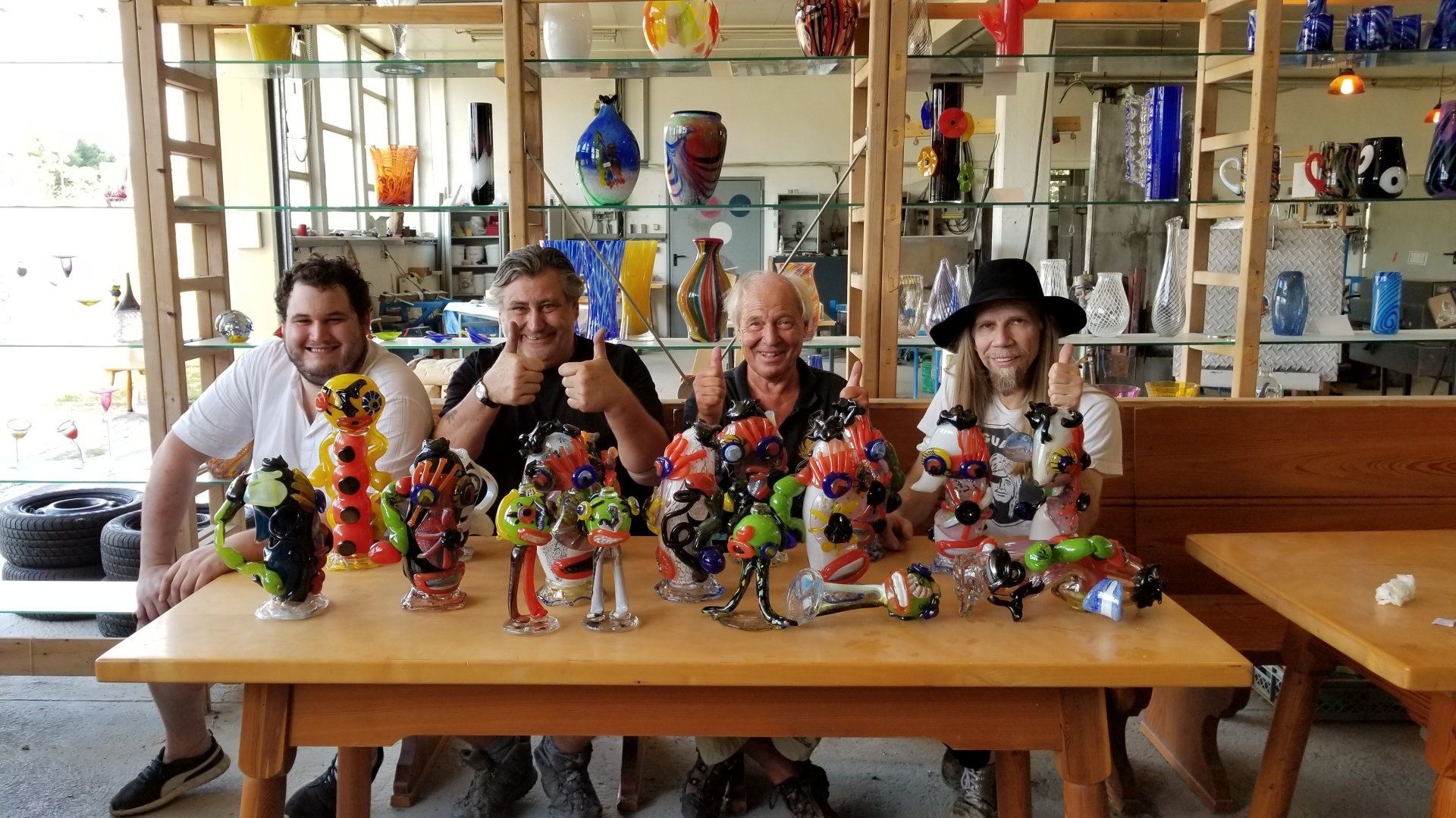 „Ich habe über 100 Glasobjekte für Otmar Alt geschaffen. Erst bei Rosenthal und später in meiner eigenen Evelyn Glashütte. Ich bin „Alt – versaut“, bei mir kommt automatisch immer wieder Otmar Alt raus“ erläutert Xaver Hofmeister seine Bedenken zur Realisierung der Projektvorhaben von Paul Kostabi. Deshalb sieht er sich mehr als Ratgeber, Helfer und Zulieferer für seinen Sohn Sebastian, dem er die praktische Umsetzung der Entwürfe überlässt.