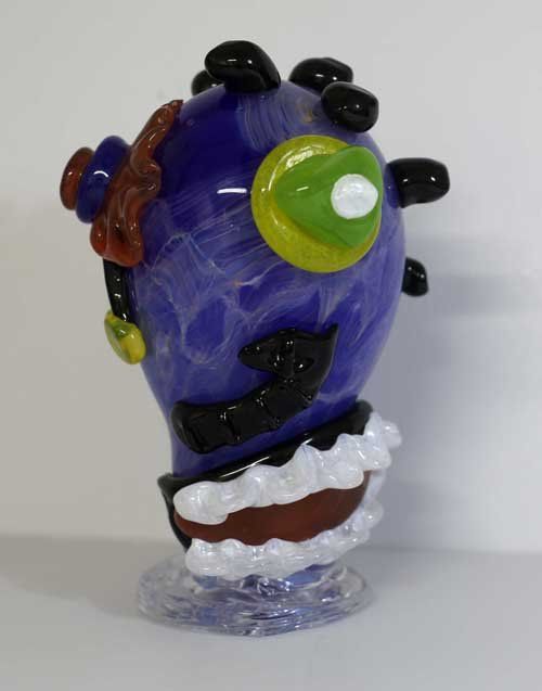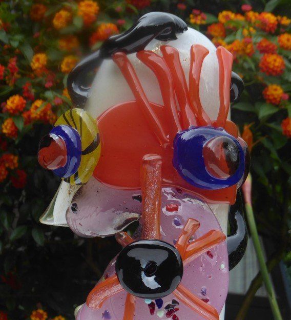 „Dreidimensionale Skulpturen, ekstatisch und von Farbenvielfalt geprägt, sind kein Problem für einen Glasmacher. Je mehr farbige Details zu sehen sind, desto beeindruckender wirkt die fertige Figur auf den Betrachter, insbesondere beim Spiel der Lichter. Die interessanten Augen, Münder und Nasen in den Gesichtern von Paul Kostabi sind dem Werkstoff Glas umsetzbar".