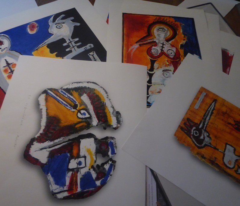 Fabelwesen, Vogelmenschen und Knochenwesen aus Glas, das würde den Künstler reizen, das wäre eine echte Erweiterung seines vielfältigen Spektrums. „Wir können es versuchen – möglichst in den Farben Schwarz, Weiß, Rot und Blau – nicht unbedingt Grün, obwohl ich diese Farbe auch liebe, ich wohne ja schließlich im Grünen, aber in der Kunst ziehe ich die anderen Farben vor“ sagte Lange-Grumfeld in einem ersten Vorgespräch mit dem Gelsenkirchener Galeristen und „Glasexperten“ Jürgen Heitbreder, der dem Künstler die Idee von der Herstellung von Glasskulpturen nahebringen möchte.