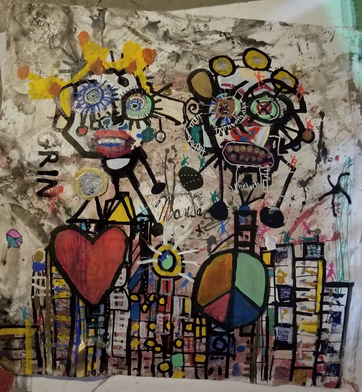 Indrek Paul Kostabi Classic High Colorful Oil On Canvas