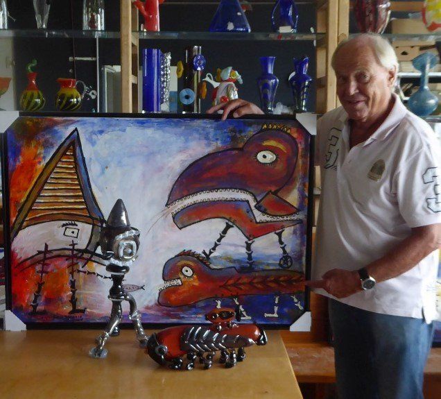 Workshop mit Paul Kostabi in der Glasmanufaktur Hofmeister, Juni 2017