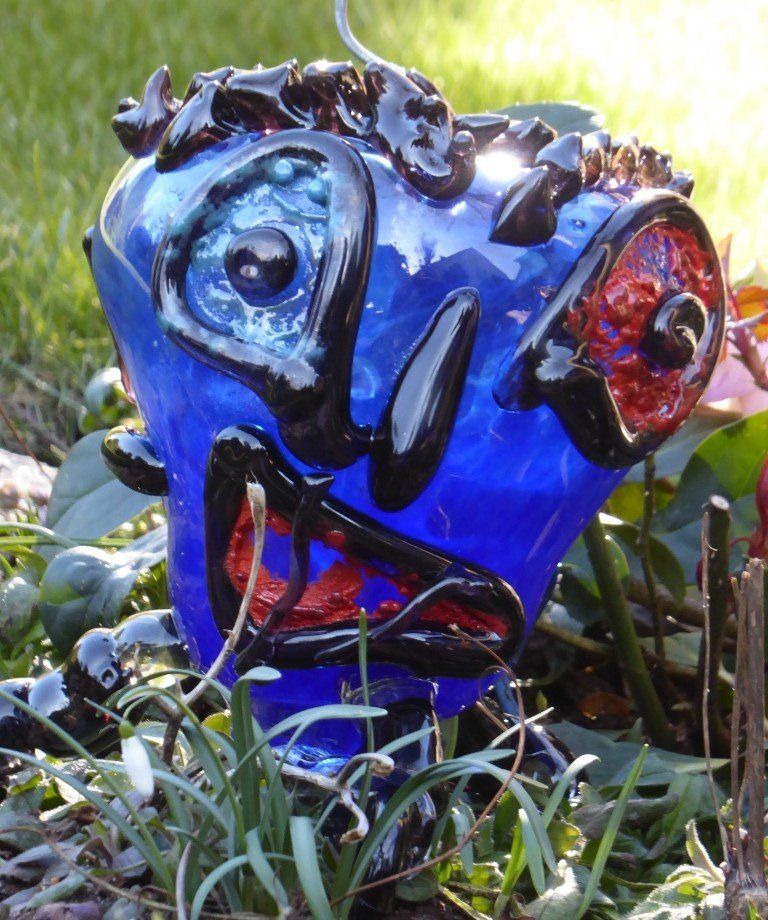 Mit diesem Glasobjekt sind wir in einer Welt voller knöchernen Existenzen und Fabelwesen angelangt, in der bunten und fröhlichen aber zugleich mahnenden und beängstigenden Welt von Josef Lange-Grumfeld.
