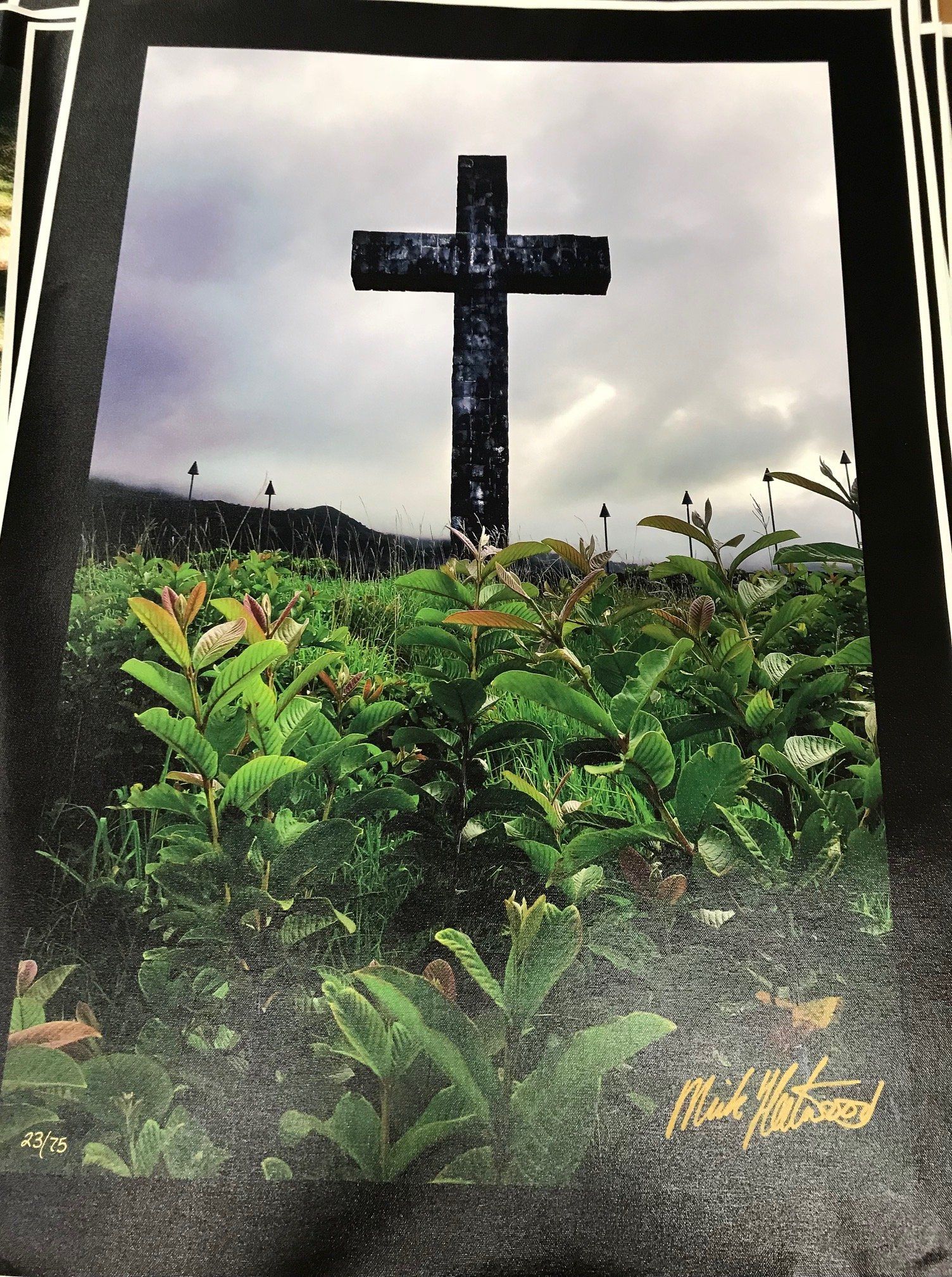 Wer einmal die Gelegenheit bekommt, ins Hana Gebiet der Hawaii Insel Maui zu reisen, der sollte über einen stillen Wanderweg entlang der Küste aus der Stadt wandern, bis er von einem Hügel aus mit Blick über Weiden in der Ferne das Denkmal "Fagan's Cross" entdeckt. Dieses Erlebnis mit einem atemberaubendem Eindruck der natürlichen Schönheit von Hanahat Mick Fleetwood in einem Foto festgehalten.