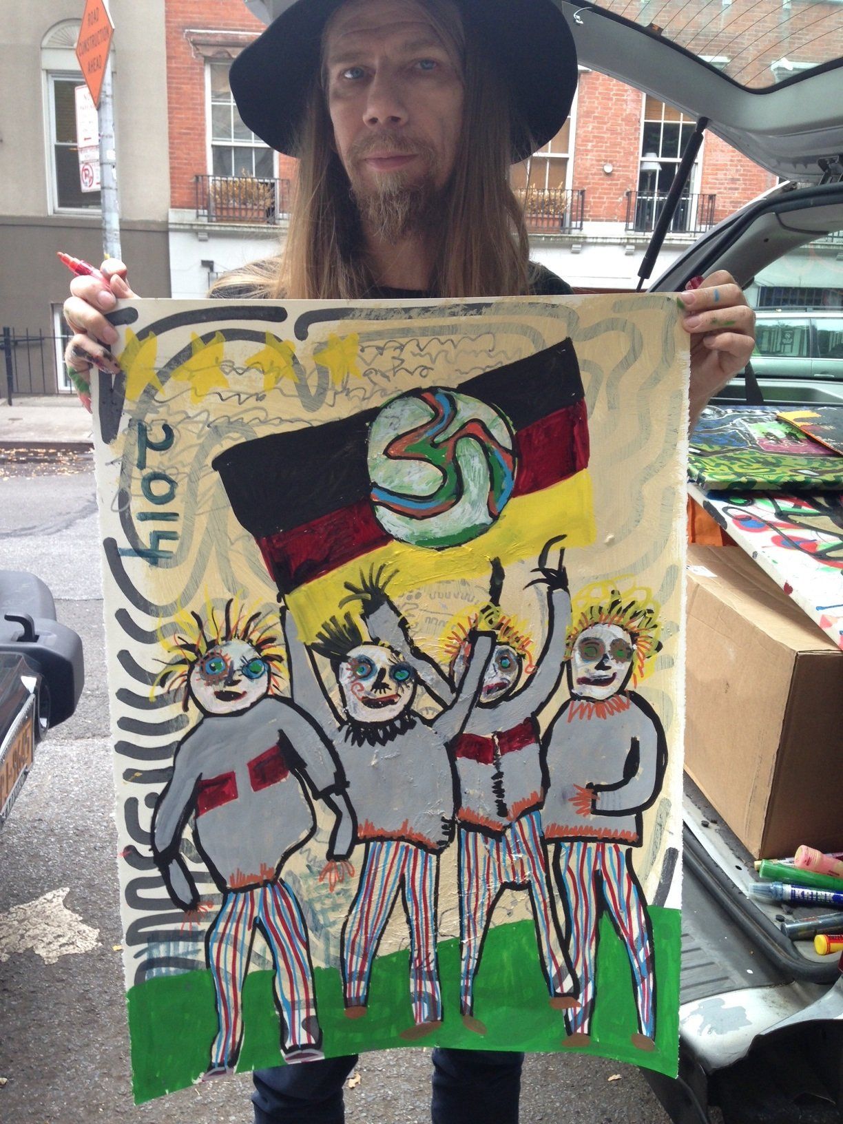 Paul Kostabis künstlerisches Schaffen zieht seine Inspiration aus dem gleichen Lebensgefühl wie seine Musik, dem Punk. Verneinung ästhetischer Perfektion, Rauheit und Unangepasstheit sind Programm. Die herrschenden Werte und die herrschende Ästhetik werden negiert, provoziert. In der Street Graffiti Art von Paul Kostabi wird nicht die handwerkliche Qualität gesucht, das Unvollkommene wird betont. Gerade dies bereitet den Boden für eine besonders kraftvolle, farbige, laute Sprache, in der uns Paul Kostabi seine Welt zu erklären versucht.