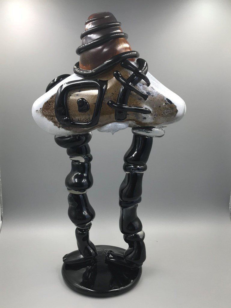 Mit diesem Glasobjekt sind wir in einer Welt voller knöchernen Existenzen und Fabelwesen angelangt, in der bunten und fröhlichen aber zugleich mahnenden und beängstigenden Welt von Josef Lange-Grumfeld.