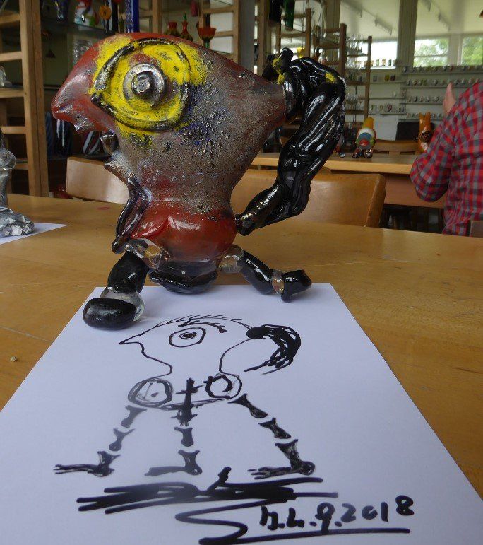 Workshop mit Paul Kostabi in der Glasmanufaktur Hofmeister, Juni 2017